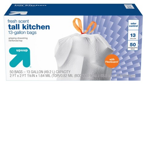 Glad forceflex grey tall kitchen drawstring trash bag unscented 13 gal 80 ct package may vary trv236004 79009 visit the glad store 4 6 out of 5 stars 5 191 ratings. These 3 layer drawstring enclosure make garbage bags easy to carry.